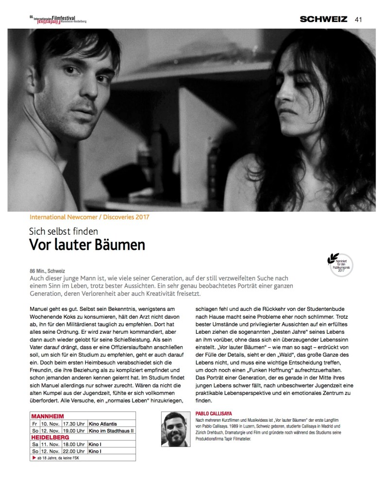 Die Festivaltour von “Vor lauter Bäumen” geht weiter! Und zwar nächstes Wochenende am Internationalen Filmfest Mannheim-Heidelberg